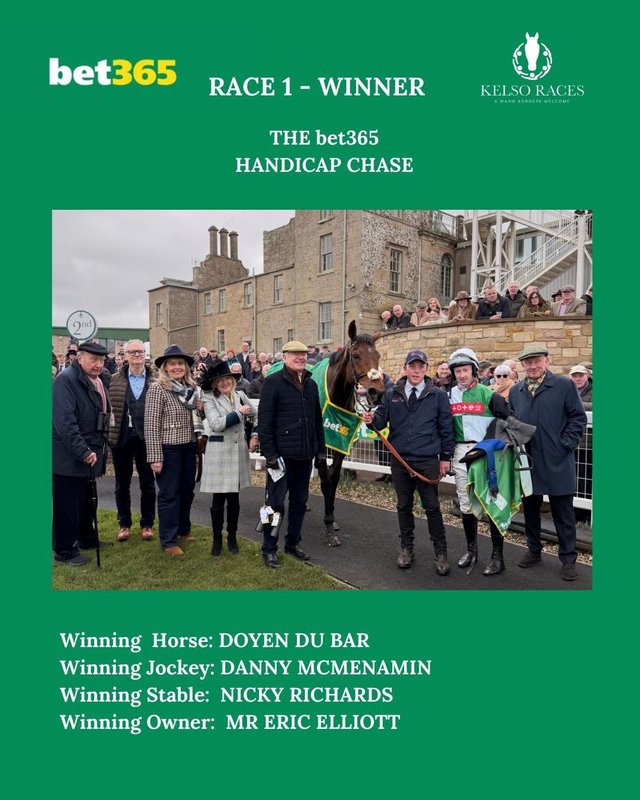 Doyen Du Bar Scorches to Success for Nicky Richards and owner Eric A Elliott at Kelso on Saturday